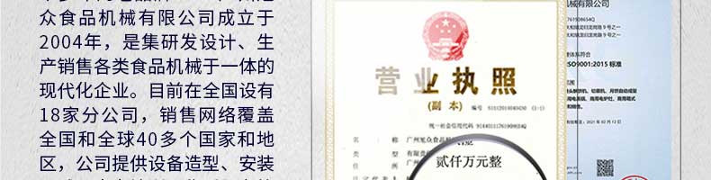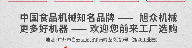 廣州旭眾食品機(jī)械有限公司是一家集科研開(kāi)發(fā),生產(chǎn)設(shè)計(jì),營(yíng)銷服務(wù)為一體的現(xiàn)代化生產(chǎn)企業(yè)。現(xiàn)代化生產(chǎn)車間,精湛制造技術(shù),所產(chǎn)機(jī)械歷經(jīng)市場(chǎng)重重考驗(yàn),不斷贏得海內(nèi)外客戶的贊譽(yù)。