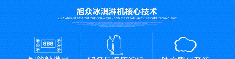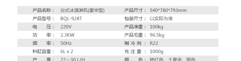 BQL-928T臺(tái)式冰淇淋機(jī),1.選用國際牌壓縮機(jī),輔以旭眾精湛工藝,大大縮短冰淇淋成型時(shí)間,高效節(jié)能;2.全新液晶智能觸控面板,簡單明了,多功能易操作;3.全新升級(jí)專業(yè)膨化泵,膨化率高,產(chǎn)量增加30%;4.一鍵清洗功能,省時(shí)方便;5.主要部件采用不銹鋼材質(zhì),時(shí)尚美觀,持久耐用;6.先進(jìn)的機(jī)械攪拌系統(tǒng),機(jī)器運(yùn)行穩(wěn)定可靠,低噪音,產(chǎn)品口感爽滑細(xì)嫩。