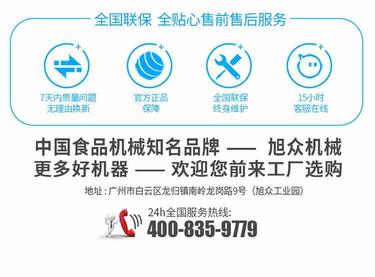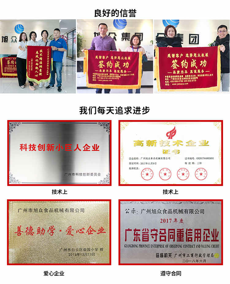 廣州旭眾食品機(jī)械有限公司是一家集科研開發(fā),生產(chǎn)設(shè)計(jì),營銷服務(wù)為一體的現(xiàn)代化生產(chǎn)企業(yè)。現(xiàn)代化生產(chǎn)車間,精湛制造技術(shù),所產(chǎn)機(jī)械歷經(jīng)市場(chǎng)重重考驗(yàn),不斷贏得海內(nèi)外客戶的贊譽(yù)。