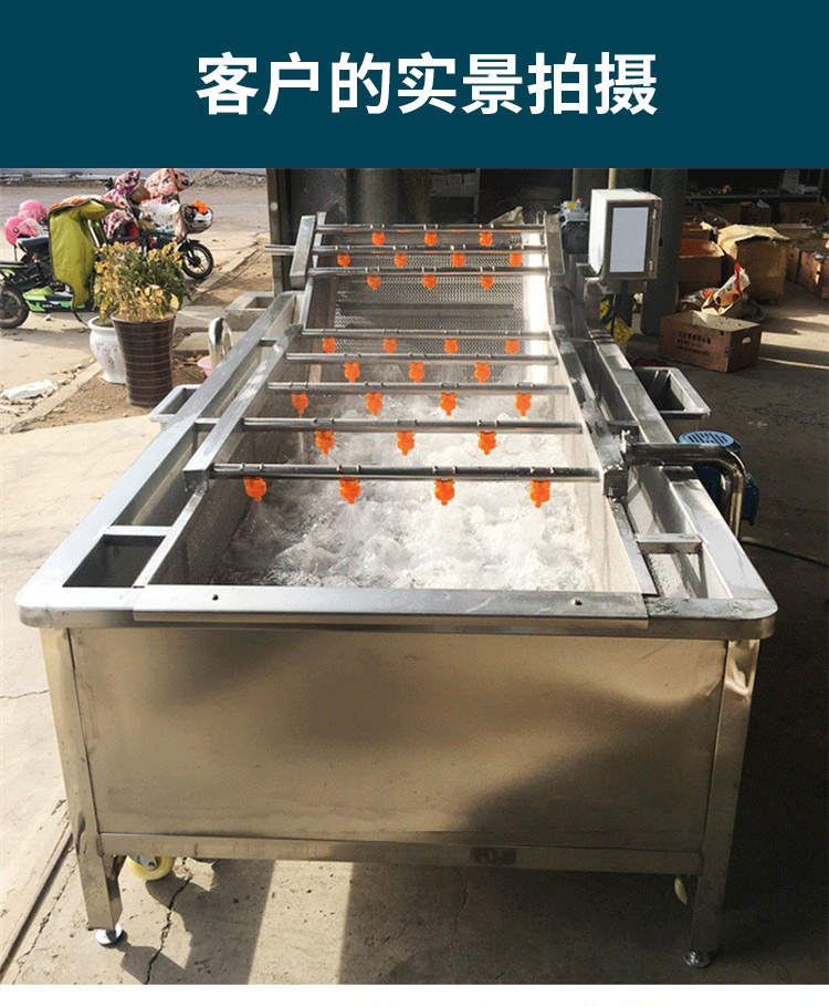 農產品設備多功能蔬果凈菜流水清洗線洗菜機,適用范圍廣泛節省大量時間的同時,還為您節約了成本。堅固耐用整機采用質不銹鋼,滋湃大動力源于好。搭載變頻電機,強勁動力穩定輸出噪音低,好的動力源于好芯。