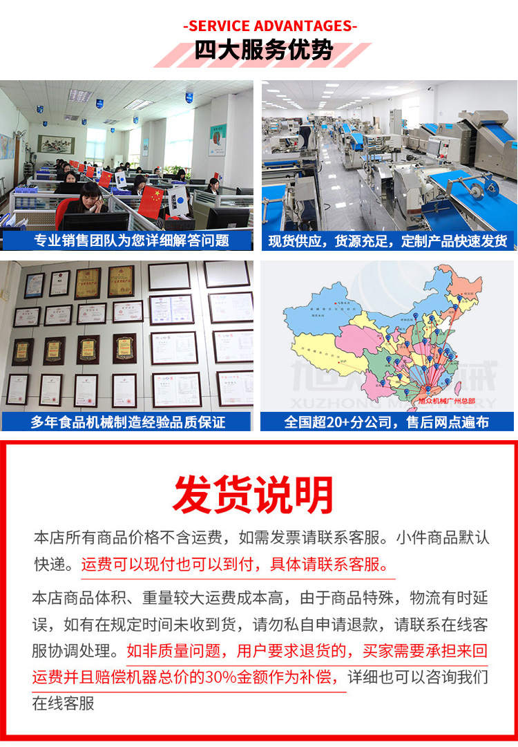 廣州旭眾食品機械有限公司是一家集科研開發,生產設計,營銷服務為一體的現代化生產企業。現代化生產車間,精湛制造技術,所產機械歷經市場重重考驗,不斷贏得海內外客戶的贊譽。