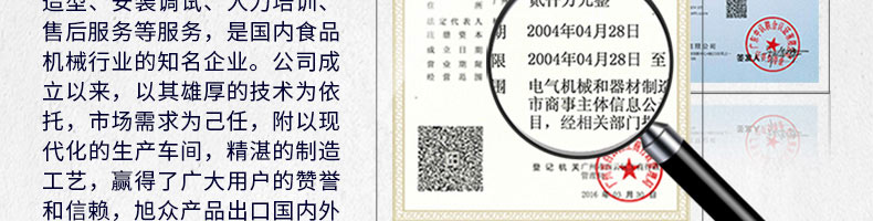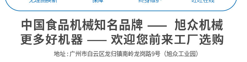 廣州旭眾食品機械有限公司是一家集科研開發,生產設計,營銷服務為一體的現代化生產企業。現代化生產車間,精湛制造技術,所產機械歷經市場重重考驗,不斷贏得海內外客戶的贊譽。
