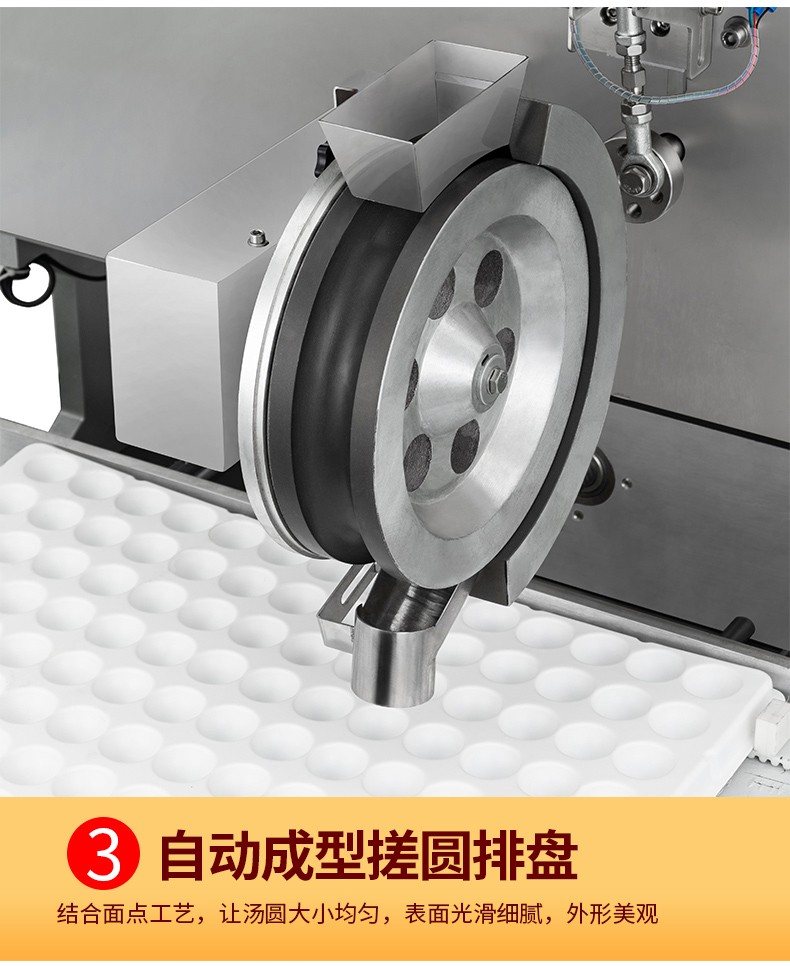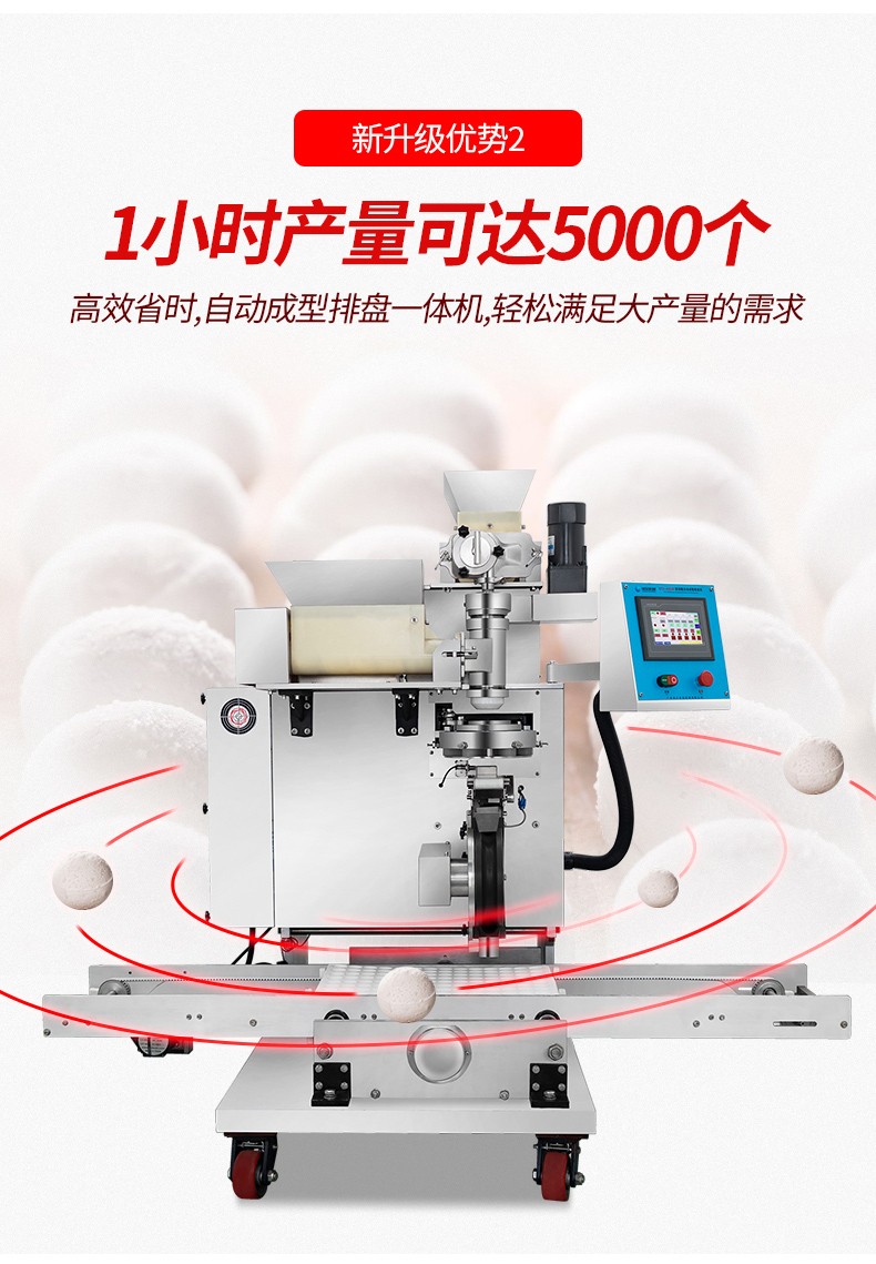 ◆觸摸屏自動控制搓圓擺盤一體成型技術,使得制品外形美觀,大小均勻,表面光亮細膩、口感柔滑,彈韌性佳。